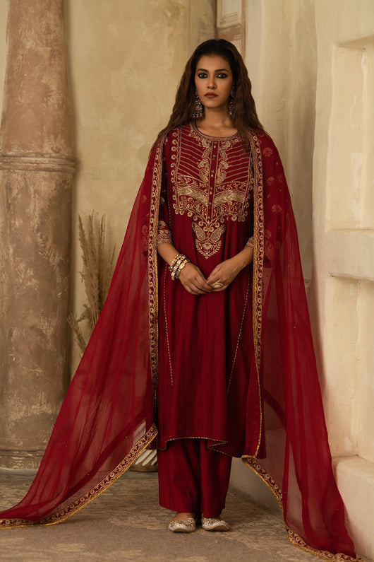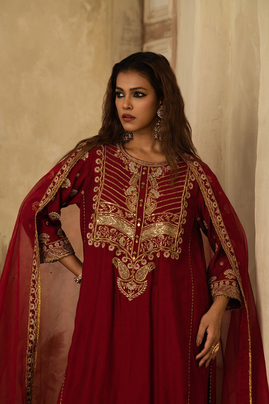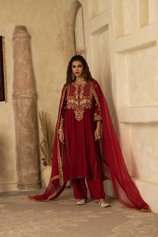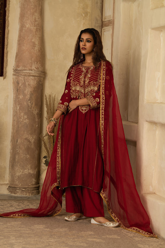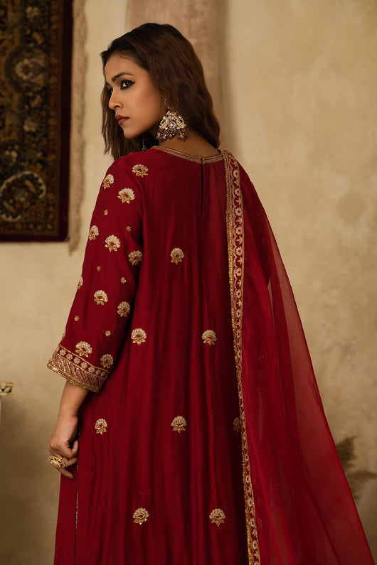 RED MUMTAZ BUTTI & JAAL SUIT SET